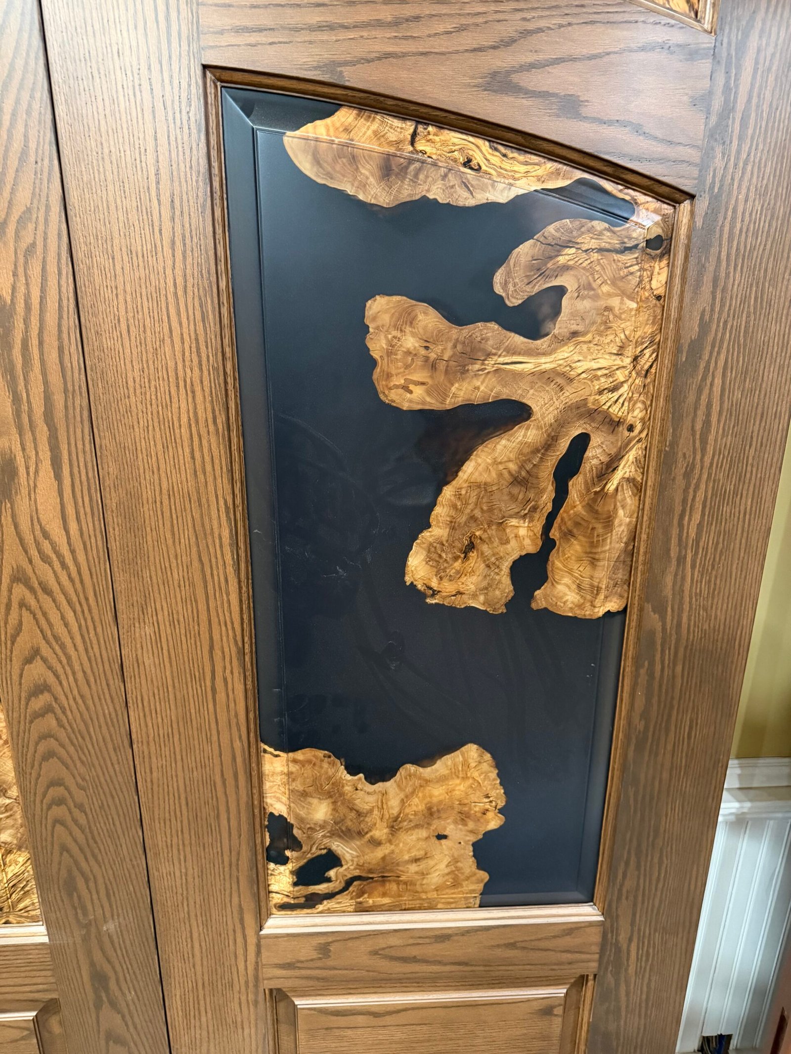 Through a partnership with Chagrin Valley Custom Furniture, we’ve combined Bent Nail’s expert craftsmanship in custom wood doors with their artistry in epoxy resin design. This collaboration allows us to offer clients a truly unique option — custom epoxy doors that showcase the natural beauty of wood enhanced with striking, one-of-a-kind epoxy accents.
